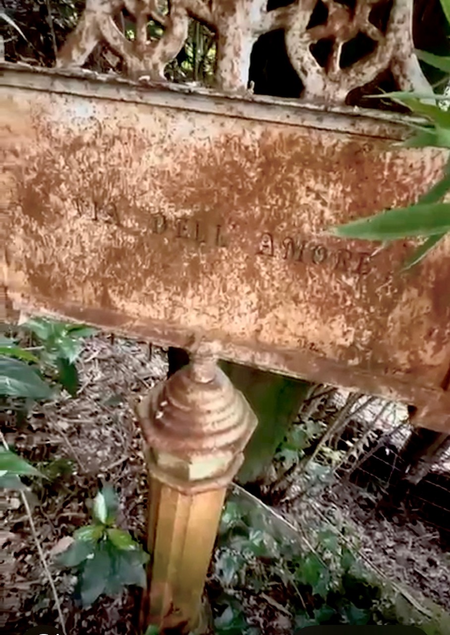 There, covered in rust, nearly swallowed by vines, was a sign.